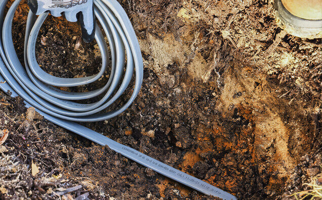 Our underground cabling work uses only premium-grade conduits, cables, and accessories designed to withstand soil conditions and provide decades of reliable service.